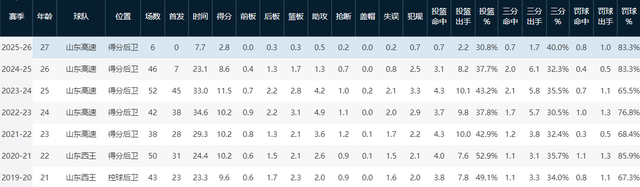 本赛季10场比赛打完,陈培东仅仅获得了6次出场机会,且全部为替补出场,场均出场时间更是只有可怜的7.7分钟。这样的时长,不足他职业生涯以来任何一个赛季的三分之一。在极为有限的时间里,陈培东的各项数据也自然而然地大幅下滑,场均2.8分0.3篮板0.5助攻,完全找不到曾经球队主力后卫的影子。